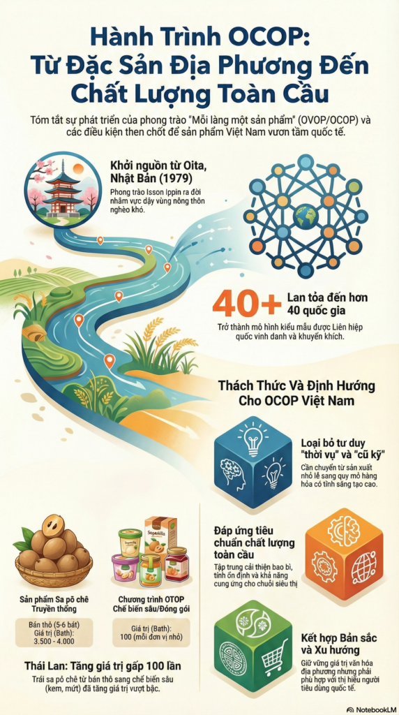 Nếu Nhật Bản dạy chúng ta về thay đổi tư duy canh tác, thì Thái Lan (với phong trào OTOP) dạy chúng ta về công nghệ chế biến và gia tăng giá trị.